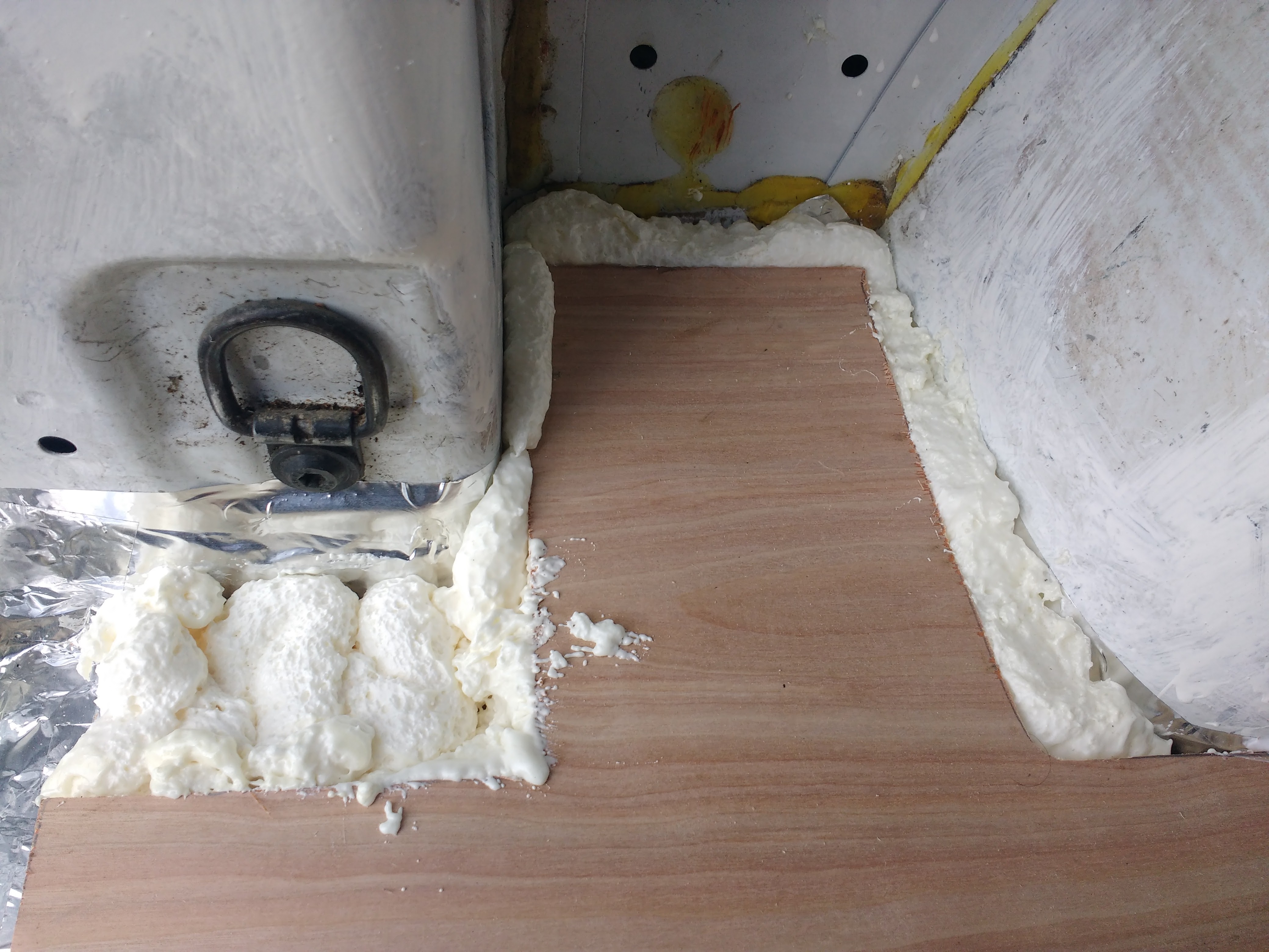 I also learnt that expanding foam had to be let alone to drip and expand as it pleases. If you try and contain it, the bubbles pop and you’re left without much foam by the time it’s dry. They expand in ways you’re not expecting too, squeezing, rolling out of gaps and sticking to anything that brushes past. They are, however, very easy to cut to shape after it’s dry with a knife.