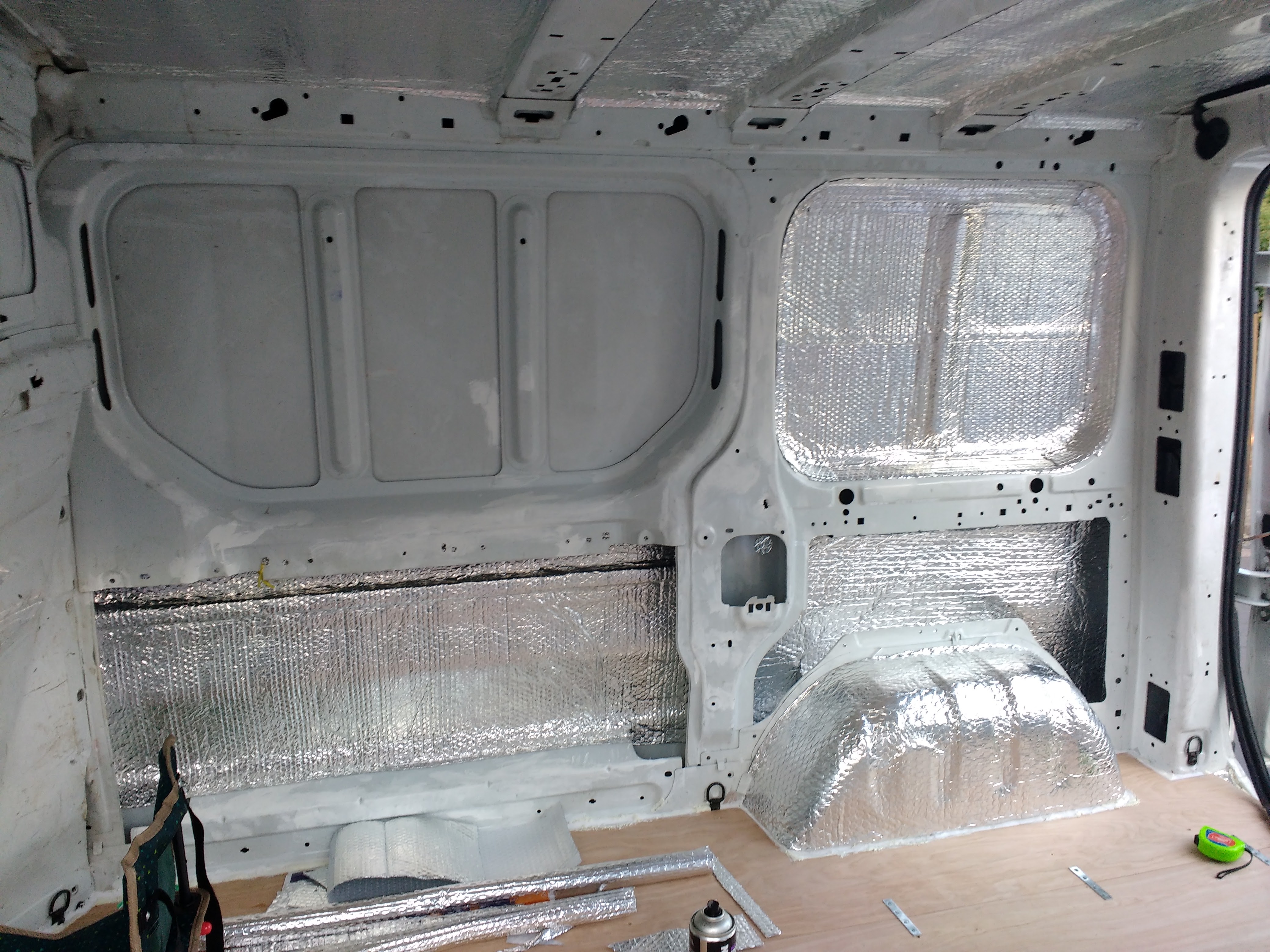 I soon found out that expanding foam insulation depletes quickly and worked out to be pretty expensive to use. Rigid foam was very difficult to fit around the subtle curves of the van too. A fiddly process that took far longer than I had anticipated.