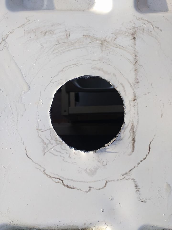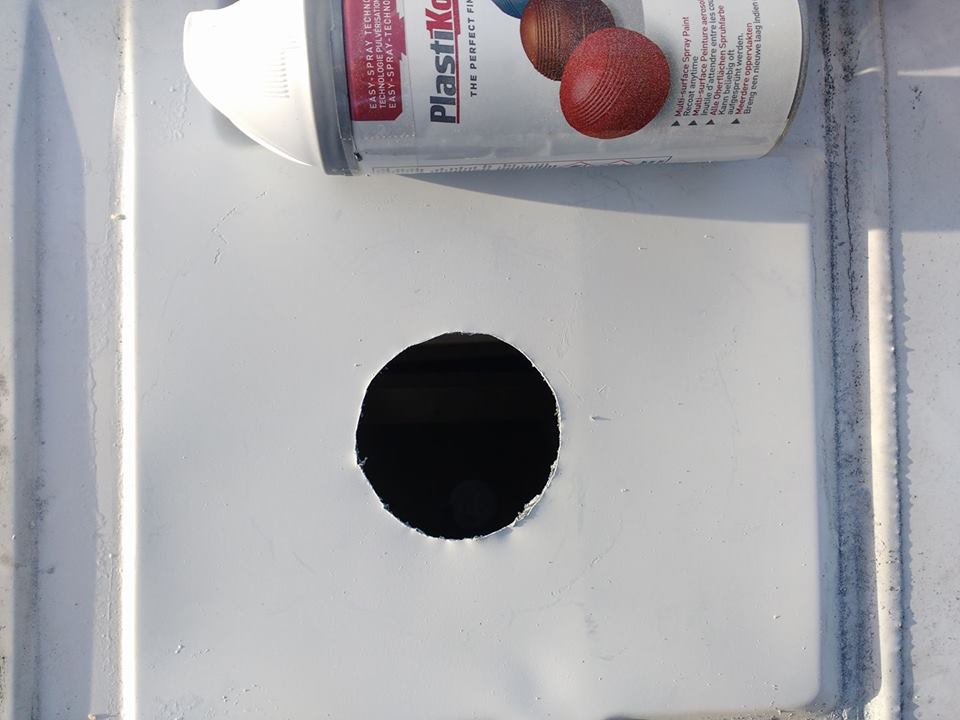 Jig saw – but I should have taped around it as the vibration scratched the paint off