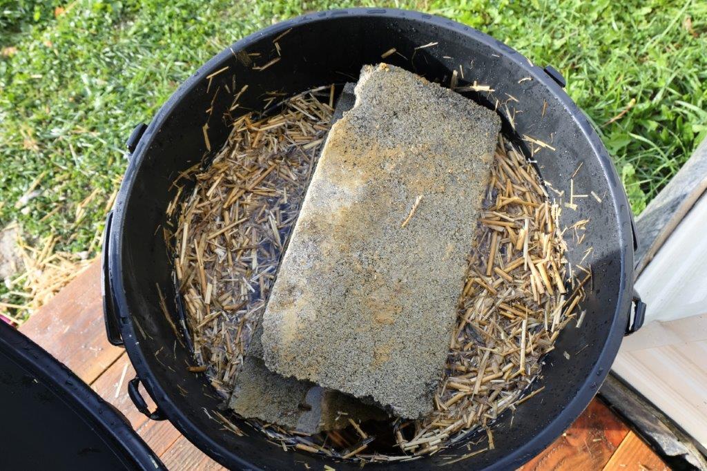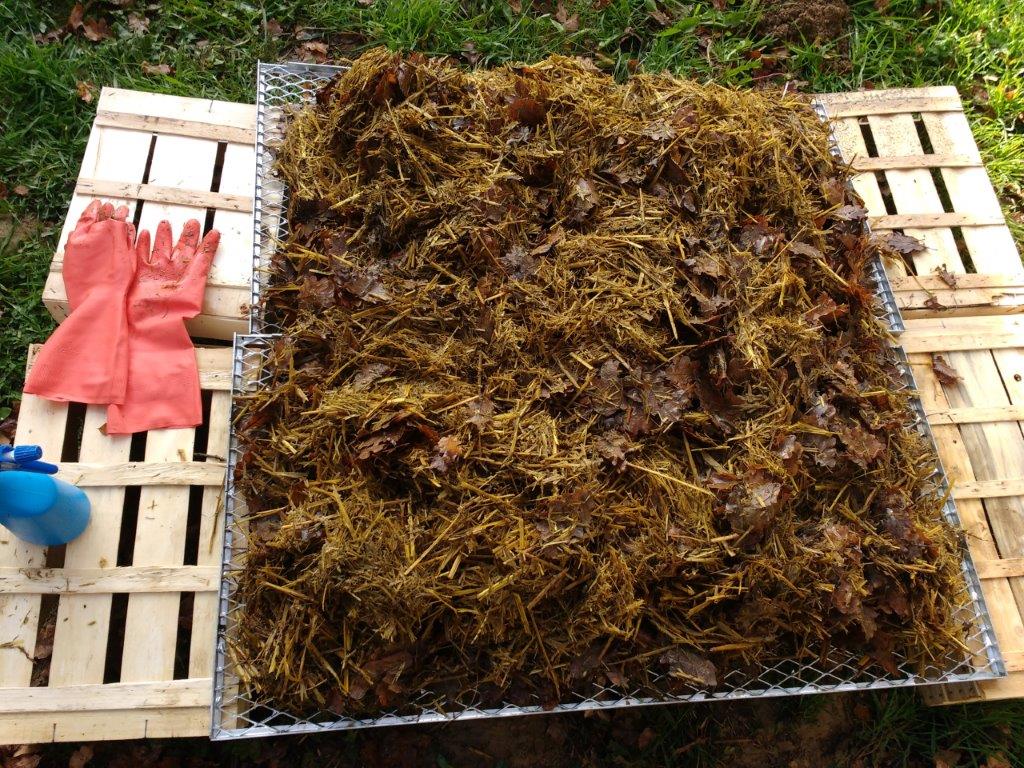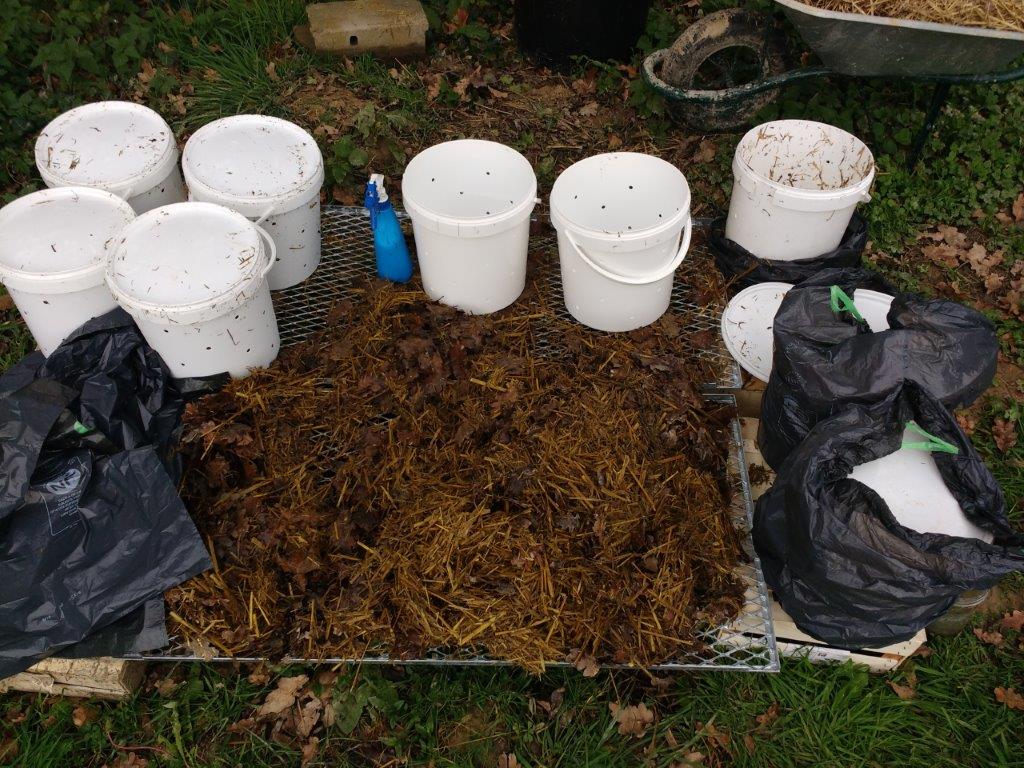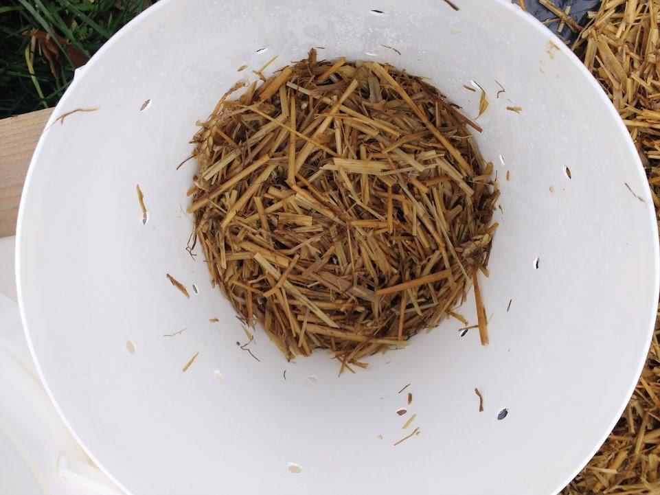 However, I used some old straw left outside for months with added oak leaves thinking that cold water fermentation coupled with ash pasteurisation will kill off excess bacteria and fungi. Not so. Always stick with clean fresh straw. All buckets have struggled to colonise this time