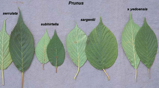 Leaves: Leaves are oval and alternate, 7 to 14 centimeters long, and 4 to 7 centimeters broad with toothed margins, many species will bare two distinctive glands at the base of the leaf blade. They will turn orange, pink or red before falling during autumn.