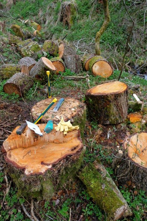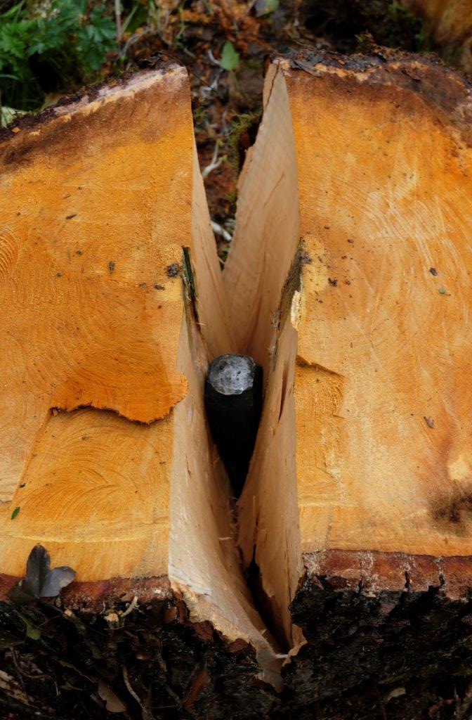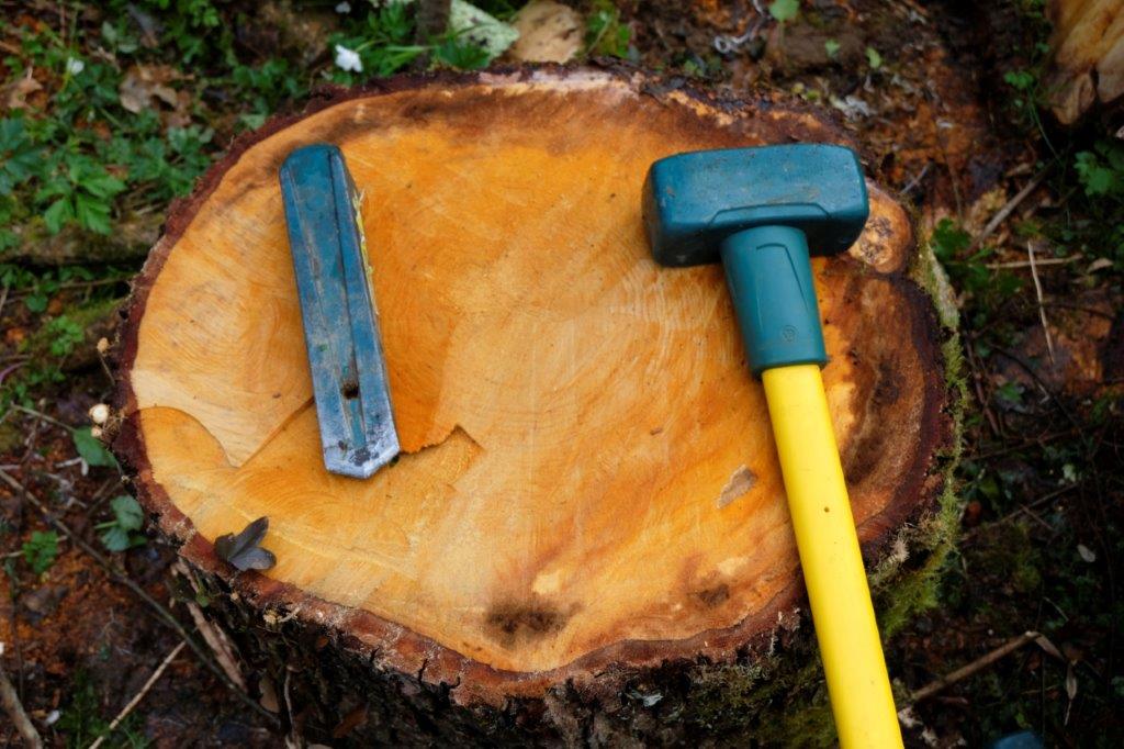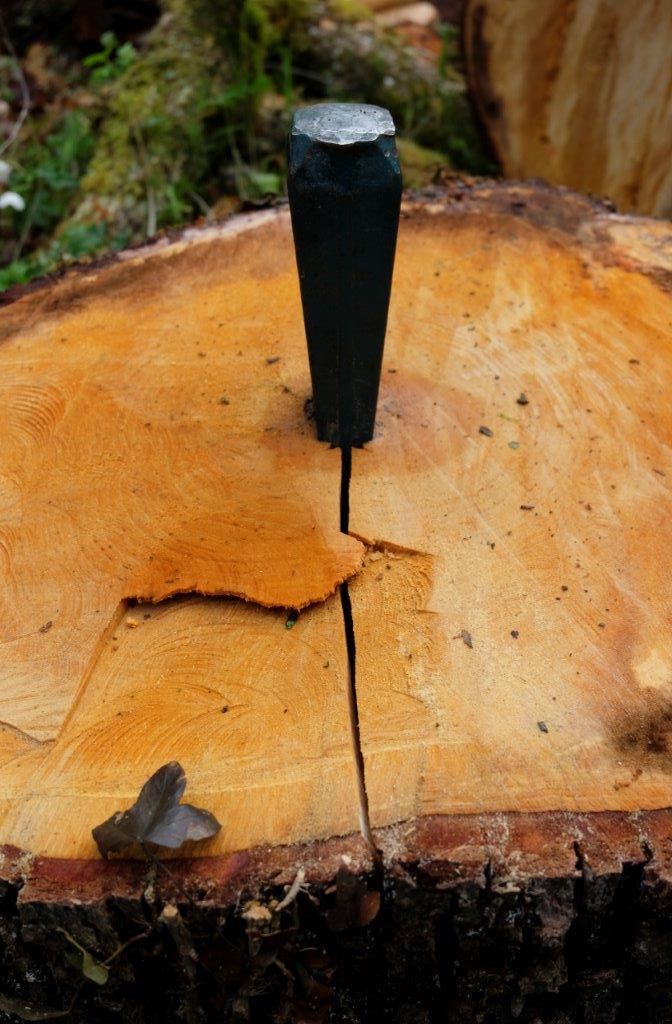Today, we began working on the land with the main task of splitting some large diameter logs. I’ve split a fair bit of logs in my life but I’ve never had to work on big ones like these. It’s slightly more time consuming and a little more energy intensive than splitting smaller diameter logs but I was surprised to find that it can be done with very basic tools and without taking too much time.