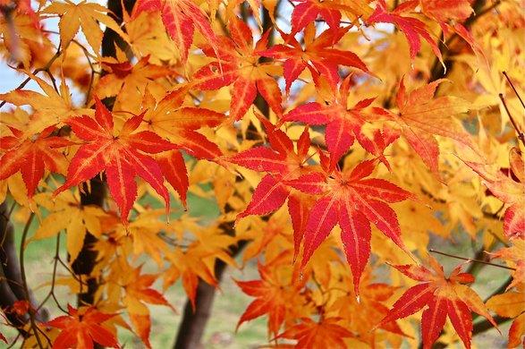 - Many Acer species have bright autumn foliage, including bright red, orange, and yellow colors. Tourism during the autumn to areas with such foliage can be very popular, and many countries have leaf-watching traditions. In Japan, the custom of viewing the changing color of maples in the autumn is called “momijigari.”