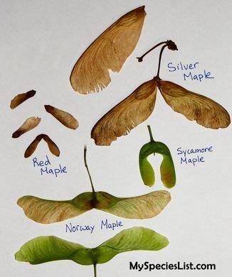 Seeds: The distinctive fruit are called “samaras” or “maple keys.” These seeds occur in distinctive pairs, each containing one seed enclosed in a “nutlet” attached to a flattened wing of fibrous, papery tissue. They are shaped to spin as they fall and to carry the seeds a considerable distance on the wind. Seed maturation is usually in a few weeks to six months of flowering, with seed dispersal shortly after maturity.