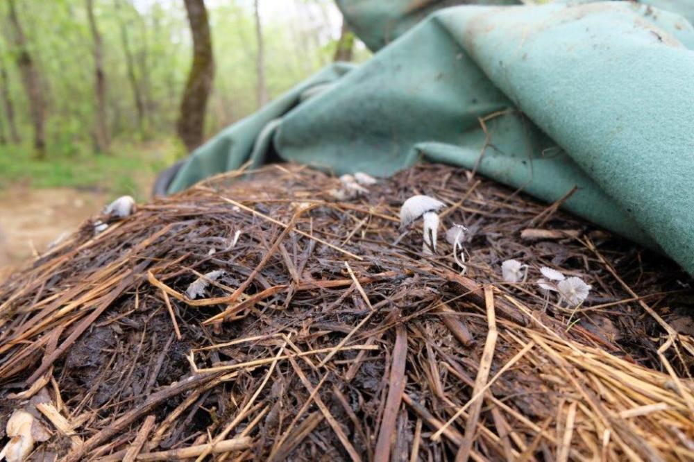 - It allows air exchange, vital to aerobic decomposition unlike the black disposable plastic covers used in conventional agriculture.