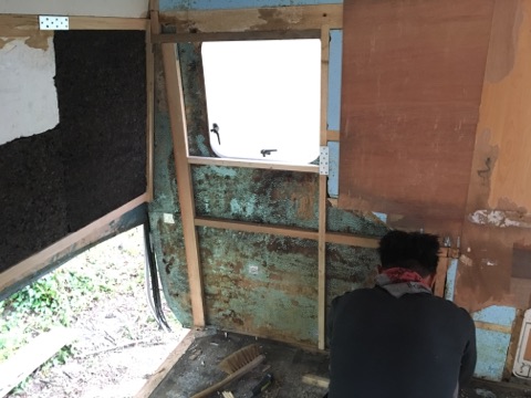 Our first week was spent on delaminating, assessing the damage, removing the rot, cleaning, breaking and planning how to rebuild. It felt a lot longer than a week, having to discover more rots and endless ant colonies with every panel that came off. The leaking roof vents, and plug holes were removed, cleaned and sealed with silicone.